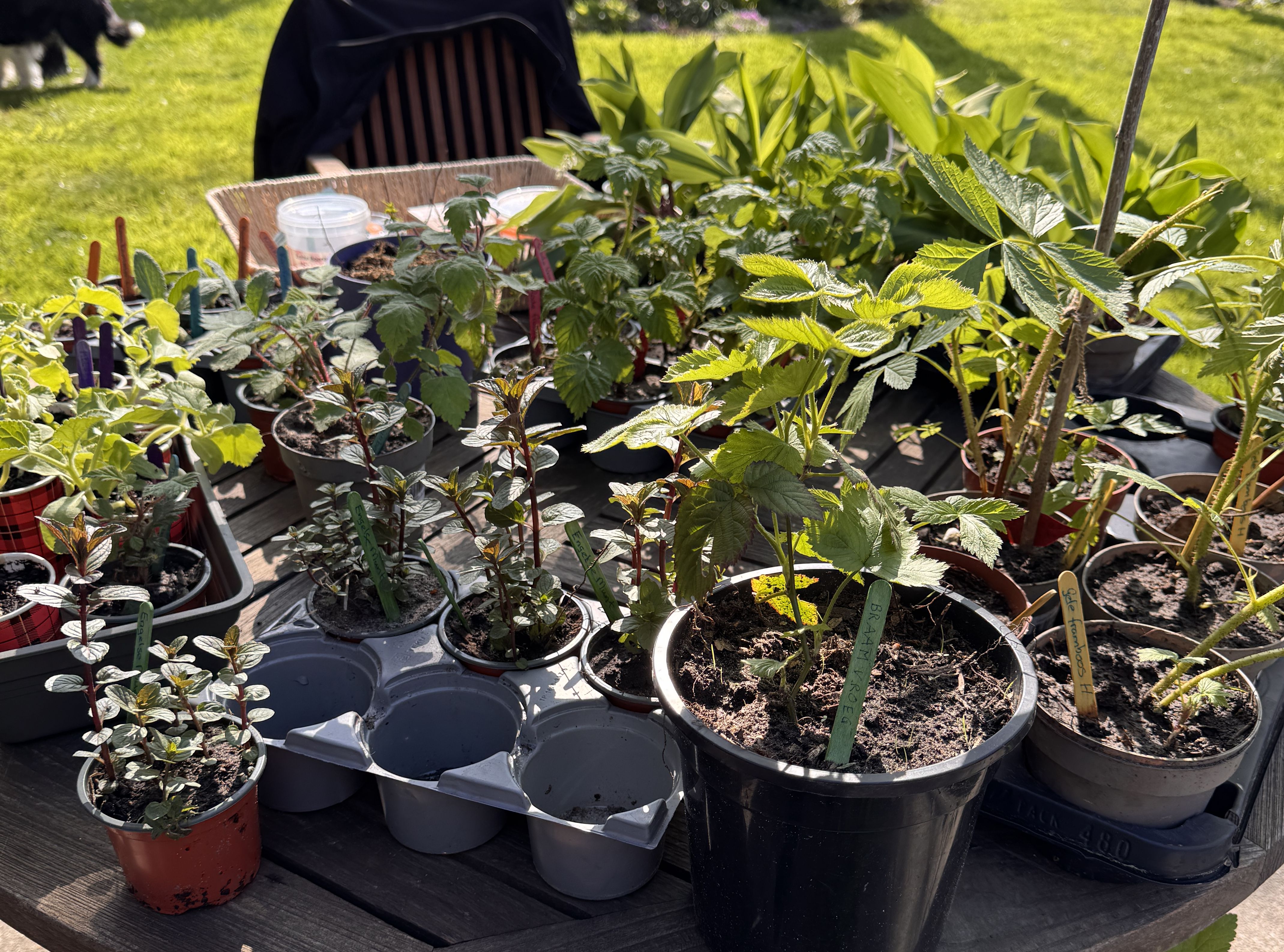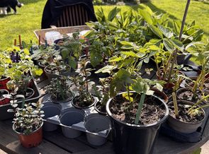 Er stonden verschillende tafels met allerlei soorten plantjes.
